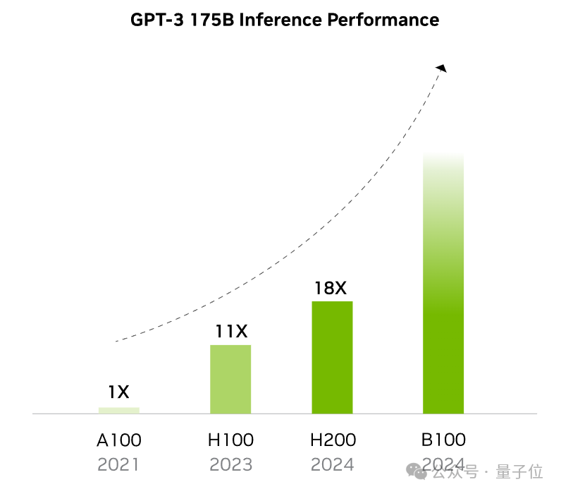 兩個B200 GPU與Grace CPU結合就成為GB200超級芯片。在標準1750億參數GPT-3基準測試中,GB200的性能是H100的7倍,提供的訓練算力是H100的4倍。