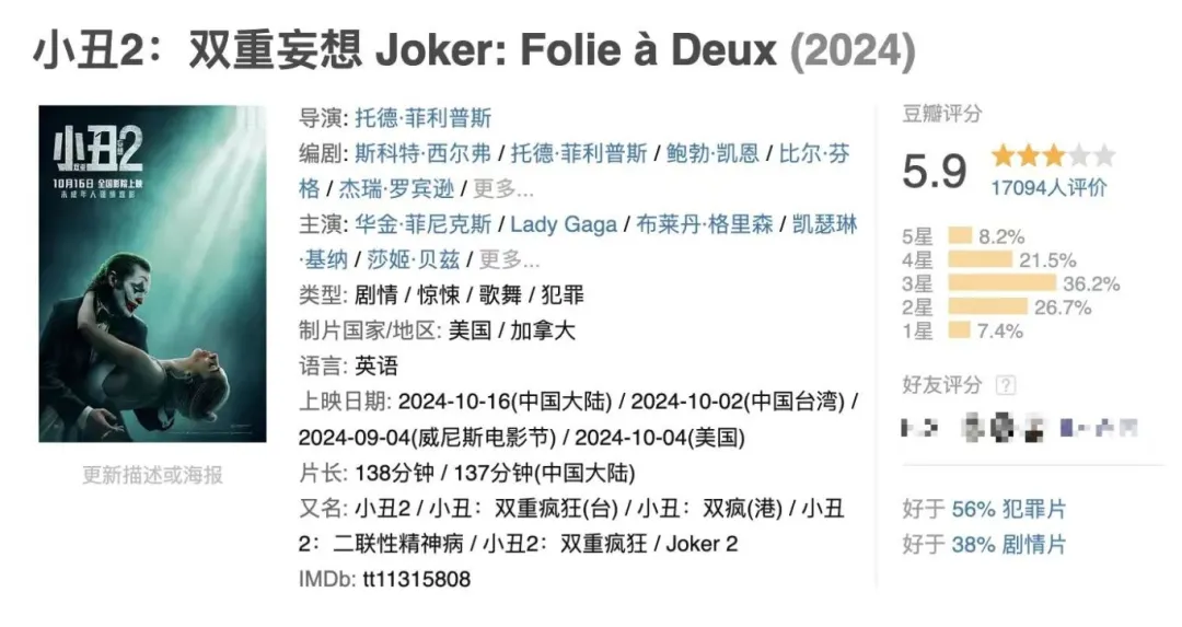 雖然在《小丑2》於國內上映之前,英文互聯網上關於《小丑2》的各種評論就慘不忍睹,讓筆者已經有了心理預期,但實際觀看之後還是料不到這電影居然能爛成這樣,難怪外網的評論有那麼大怨念。總之筆者也非常不推薦大家花錢進電影院觀看。