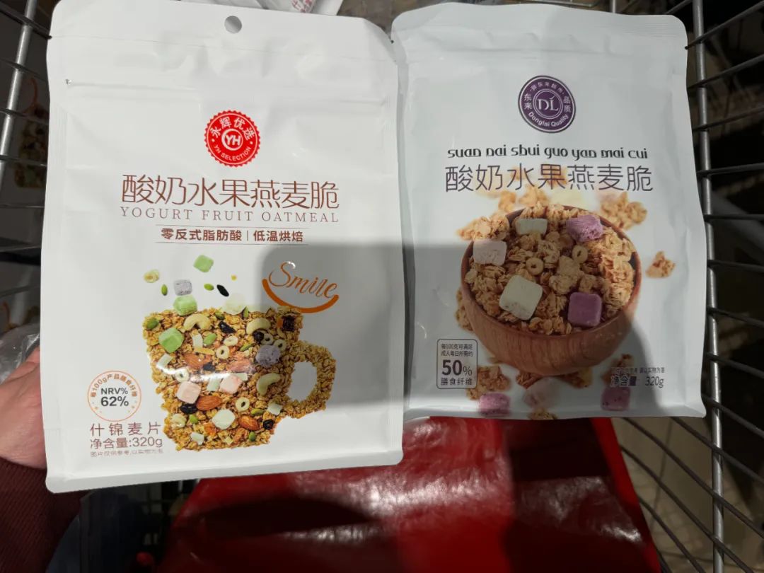 有趣的是,永輝自營的產品極其像胖東來,知危對比兩家的麥片和洗衣液,包裝幾乎一模一樣,不仔細看的話,甚至注意不到自己拿的是 “ YH ” 還是 “ DL ”。