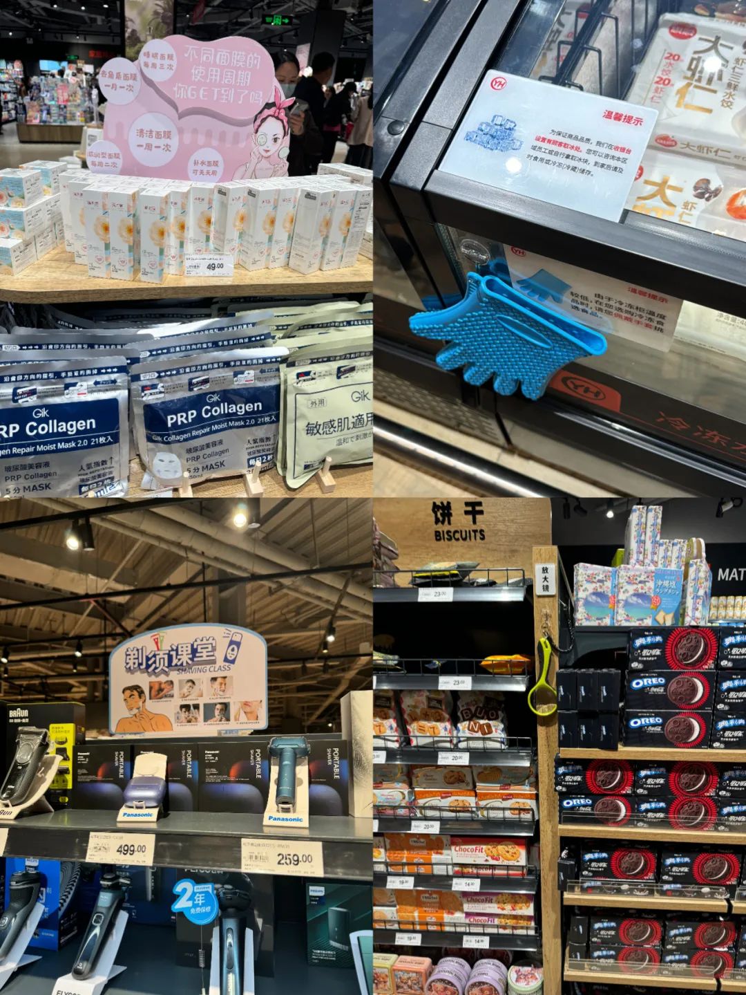 貨架旁提供放大鏡;冰櫃旁提供膠質手套;專門設牌子解釋產品用法、內衣褲尺碼;生鮮區還提供菜譜;出口處設置可以微波加熱、洗手、喝水的便民區域……這些硬性服務確實在傳統賣場裏從未見過。