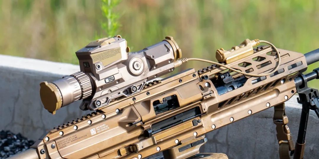 SSRS的機匣上方設置有傾斜的導軌,並且加裝了美軍NGSW計劃中的XM157火控瞄準鏡。由於榴彈發射器彈道比較彎曲,向前傾斜的導軌有助於射手瞄準目標。不過,這個“原型槍”實在是太過於簡陋和粗糙了,機匣上面甚至找不到彈匣釋放鈕,也看不到固定內部零件的各種軸孔、銷釘孔,軍武菌懷疑這根本就是個模型。