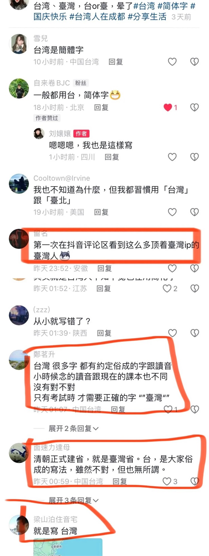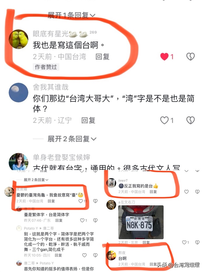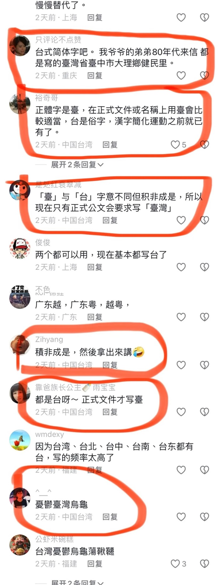 由於把“台”字寫成了“台”,然後,被廣大內地網友説這字寫錯了,於是乎,很多台灣IP的網友們在跟帖,説他們從小就是這寫這個簡體字“台”呀。