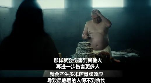 然而,無論男主如何控制,上層的人依然胡吃海喝,下層的人依然連個飯渣都撈不到。