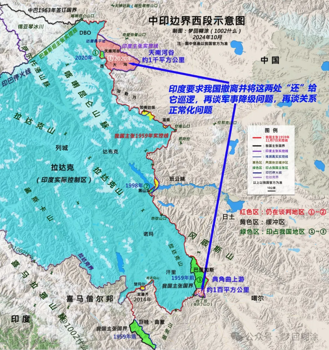 **我國是在拒絕四年之後,答應了印度的這個訴求。**不管這個訴求滿足得徹不徹底,是不是我們加了附加條件,結果都是:我方如印度所願,將撤離這兩個地區的哨所。總面積一個是如印度所説972平方公里(是否撤離西大溝的哨所存疑),一個是100多平方公里。印度外長蘇傑生説,“恢復了2020年前的狀況。”
