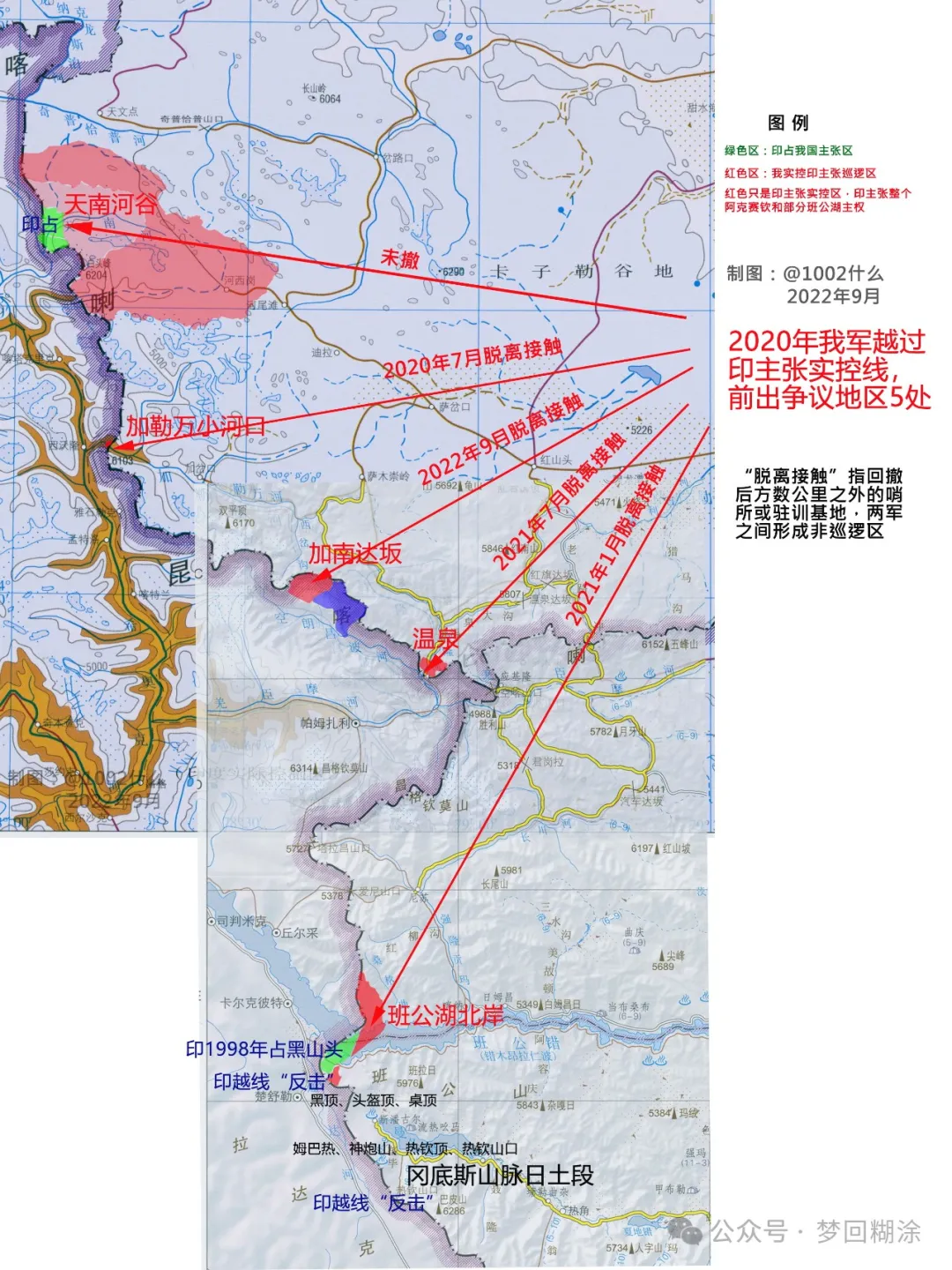 直到1976年,在1971年肢解巴基斯坦和1975年吞併錫金的驕傲之下,印度在西段劃定了65個巡邏點,確定了所謂**“1962年9月8日線”(LAC)和“巡邏界線”**(LoP);從此,**再次進入天南河谷巡邏。**並且稱,為了讓中國意識到其行使主權,特意留下香煙盒等物件;還利用我國在此修的公路巡邏。
