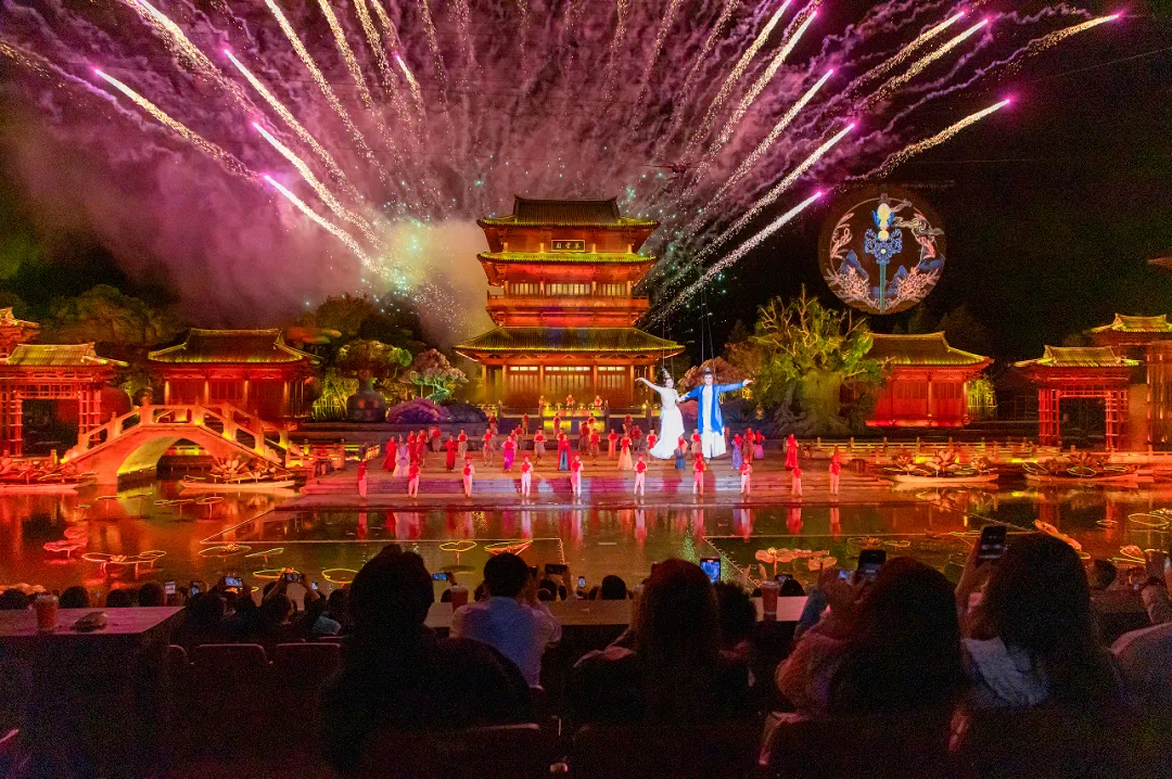 通過實景演出與多媒體結合,天仙緣景區基於文化IP故事打造了大型仙幻實景演出《天仙緣》,將董永與七仙女的故事搬上舞台,讓遊客能夠身臨其境感受西溪文化魅力。全息投影、動態捕捉等技術的應用,將西溪的文化魅力和藝術美感完美融合。互動環節的涉及,使得觀眾能夠參與到故事中去,沉浸式體驗董永與七仙女的傳説故事。