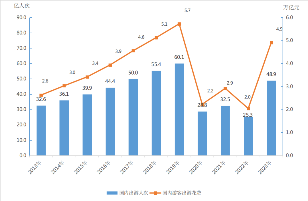 國慶假期文旅市場的火熱並非特例,從2023年全年數據來看,國內旅遊市場也在強勁復甦,並進一步帶動了餐飲、交通、物流等一系列關聯領域的增長。《2023年文化和旅遊發展統計公報》顯示,2023全年國內出遊人次48.9億,同比增長93.3%。國內遊客出遊總花費4.9萬億元,同比增長140.3%。