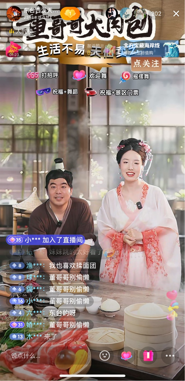 通過挖掘景區歷史文化背景,東台西溪景區最終在天仙配、董永傳説故事中選擇了董哥哥、七仙妹作為傳播抓手,打造IP內容。在直播間搭建古風場景,以情景演繹的方式與觀眾互動聊天,增加直播曝光與流量留存。通過系統化的直播間建設,打造了自有傳播渠道陣地,構建了穩固的線上流量入口。