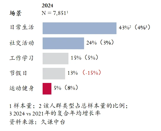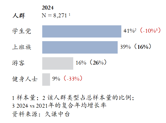 到2024年,咖啡消費趨勢顯示出明顯的多樣化,不僅在工作人羣中以提神外,更在口感和社交屬性上有所追求;學生羣體不再只是追求提神,更加關注咖啡的品質,使咖啡館成為學習和交流的熱門場所;旅行中咖啡逐漸成為自駕和騎行****遊客的必備飲品,體現出旅途中的便捷與地域文化體驗;健身人羣則偏好低糖低卡的咖啡,以符合健康生活方式的需求。