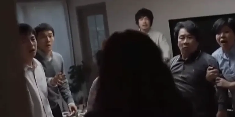 接着叫來兒子和小女婿,三個男人一起摁住掙扎的英惠。