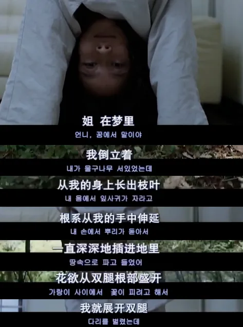 其中分別講述英惠不吃肉,姐夫和英惠的曖昧關係,再到姐姐把英惠送去精神病院的故事,是通過非線性的敍事手法來還原的。