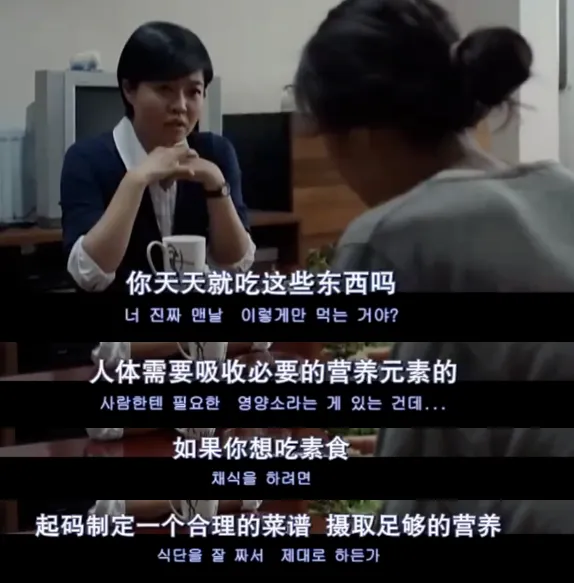 一連多日的素食,讓英惠變得瘦弱不堪。