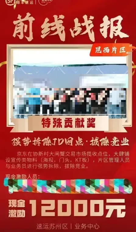 順豐員工拆除京東攬收點,被內部獎勵1.2萬?