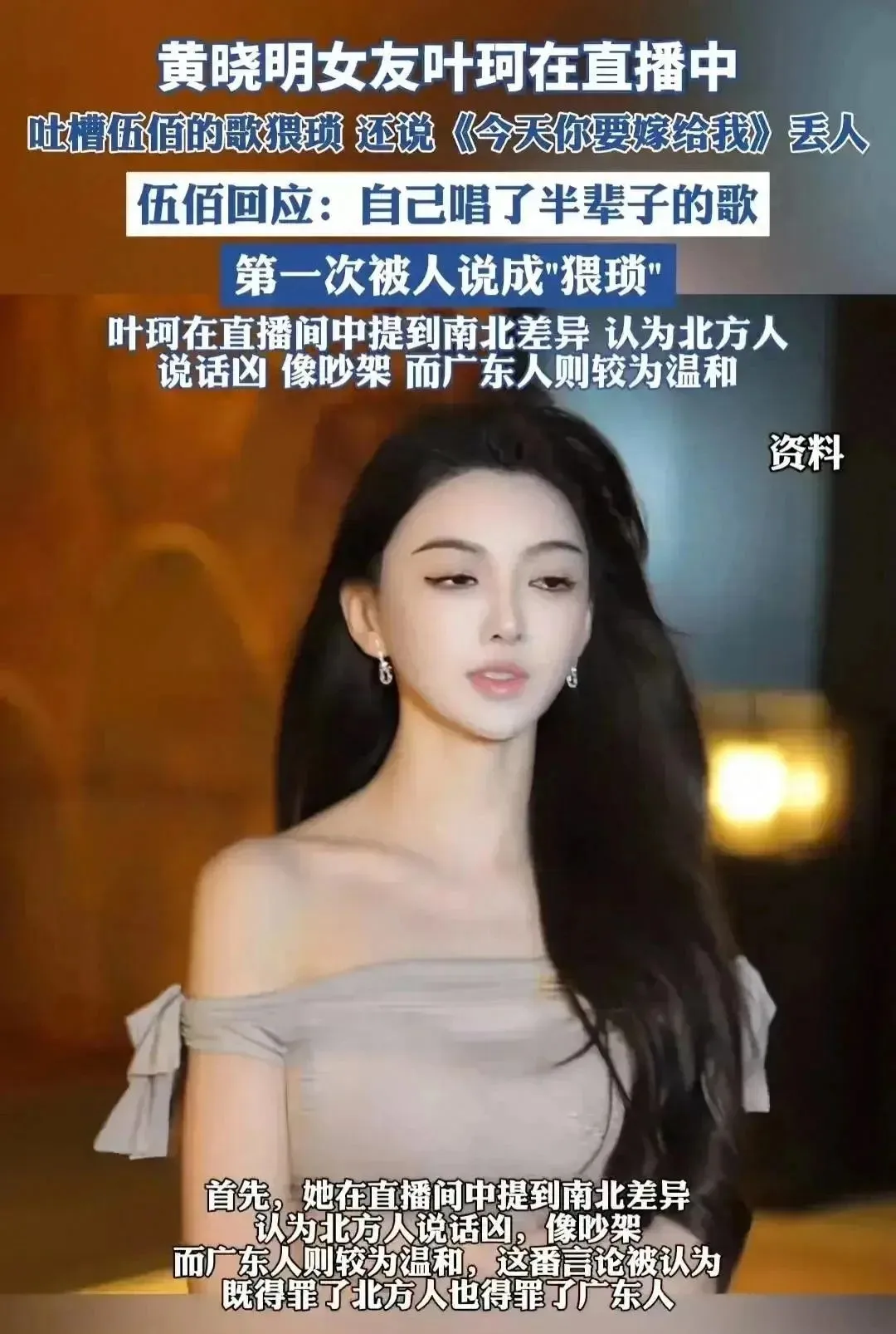 葉珂在直播間中抱怨北京人太兇,覺得北方人説話兇,像吵架,而廣東人則較為温和。