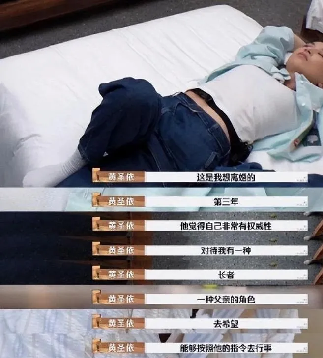 在《再見愛人4》中,黃聖依坦言自己想要離婚的想法已經有三年之久,對於楊子的大男子主義,她感覺自己受到了捆綁,有些窒息。