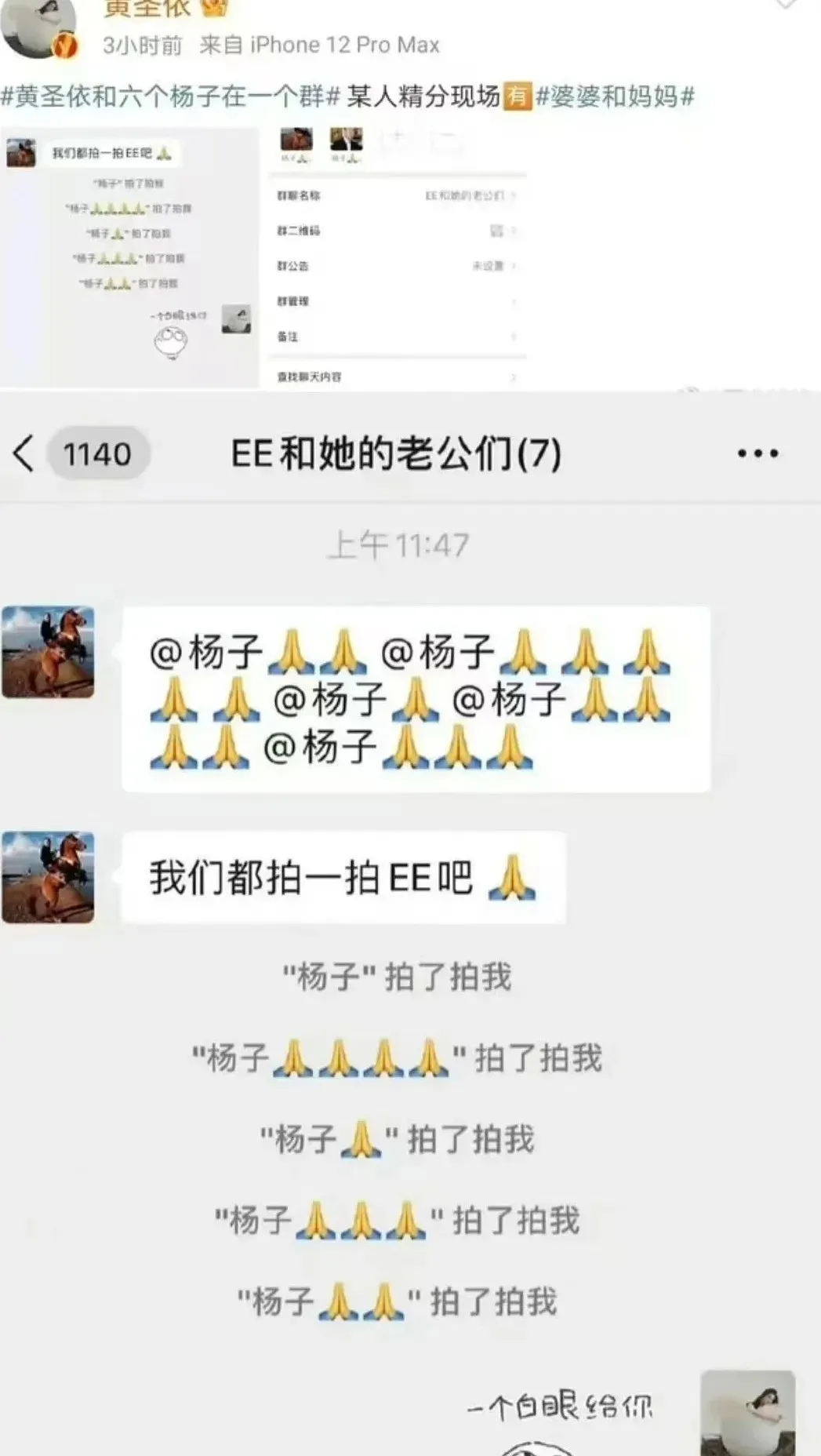 黃聖依為了聯繫他,和他建了一個7人微信羣,羣成員包括楊子的6個號和黃聖依自己的賬號。