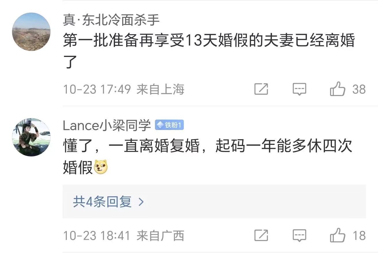 有網友在看到這一消息動起來歪心思,如果政策屬實的話,那起碼不是我一年可以多休4次婚假?