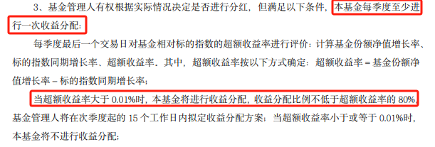 A500指數ETF(SH560610)在基金合同中約定,每季度最後一個交易日ETF相對標的指數的超額收益率>0.01%時,會進行強制季度分紅,收益分配比例不低於超額收益率的80%。