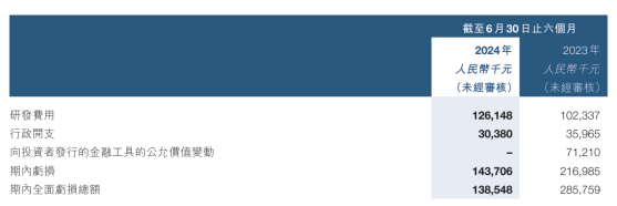 為了推進相關產品開發,近年來公司的研發費用在不斷增長。財報顯示,截至2024 年6月30日止六個月,來凱醫藥的研發費用達到人民幣1.26億元,同比增長23.3%。另外,由於暫無產品銷售,公司始終處於虧損狀態。