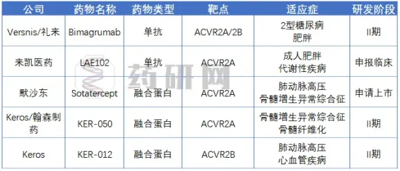 據藥研網整理,真正進入臨牀研究的、以肥胖為適應症的ActRII抗體,僅有禮來的Bimagrumab和來凱醫藥的LAE102。