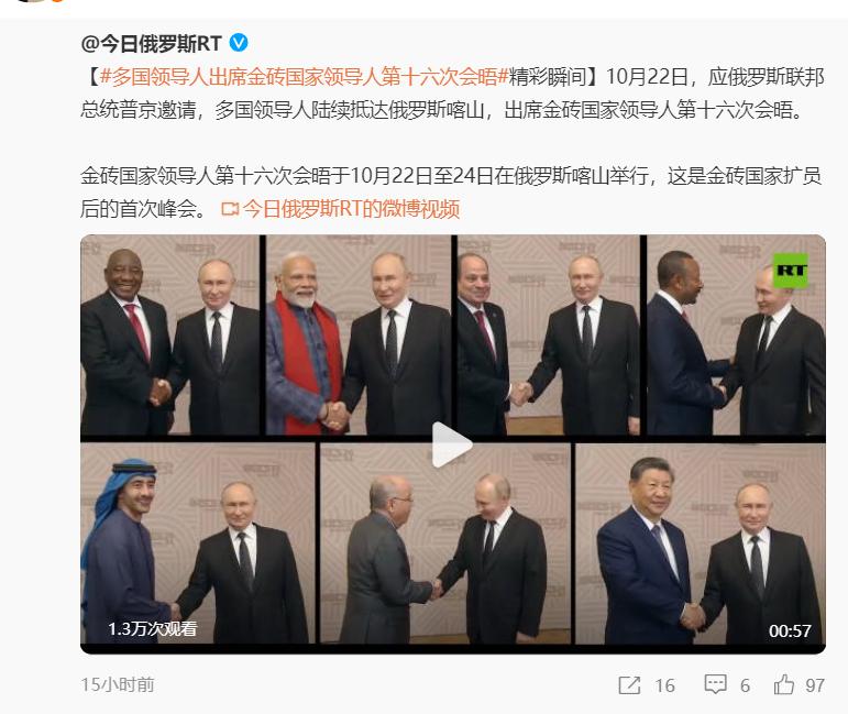 喀山金磚峯會目前正在火熱舉辦當中,第一天來的都是成員國,有中國,印度,南非,埃及,埃塞俄比亞等國。
