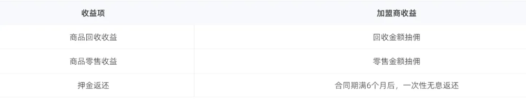 從投入上看,一次性投資預估在30-40萬元間,租金、裝修、薪資由加盟商全額承擔,軟裝、道具、零售商品、回收資金則由加盟商向轉轉交納押金獲取。