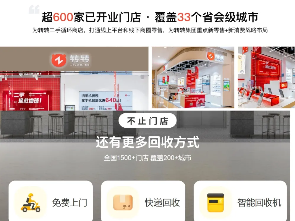 再拋開加盟商的利潤來談轉轉線下門店發展,比轉轉搶先佈局線下的愛回收,目前在全國已有超過1500家門店,並且在四年前打造了非標二手產品自動化流轉系統、在三年前發力奢侈品回收,在兩年前拓展多品類回收服務。