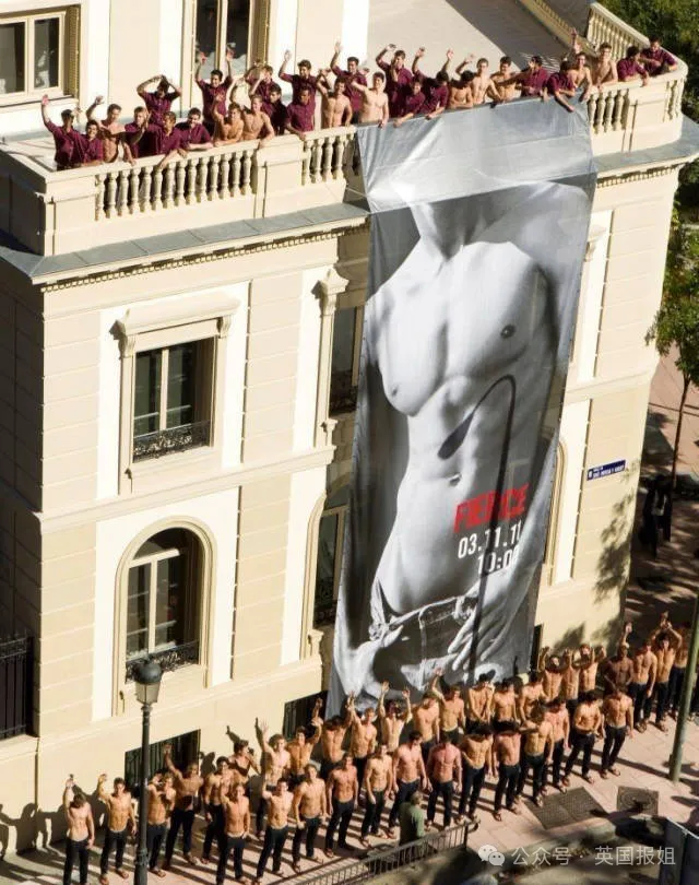 為了貼合品牌的審美取向,A&F不僅推出過腹肌男造型的香水,甚至在門店外直接懸掛肌肉男的巨型海報。
