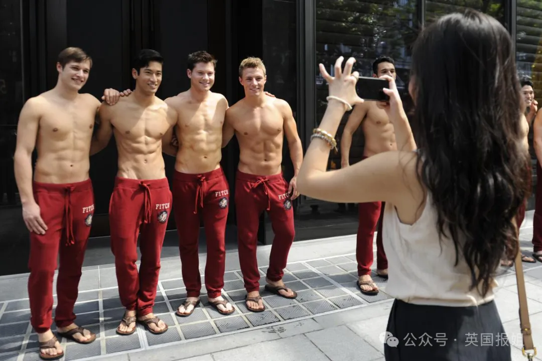 在新店開業時,A&F會聘請大量半裸的肌肉男模在門外迎賓。