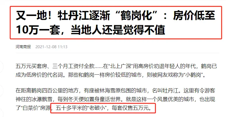只有東北老鐵們欲哭無淚:大城市買不起,老家房子跌到底——房價,扎心。