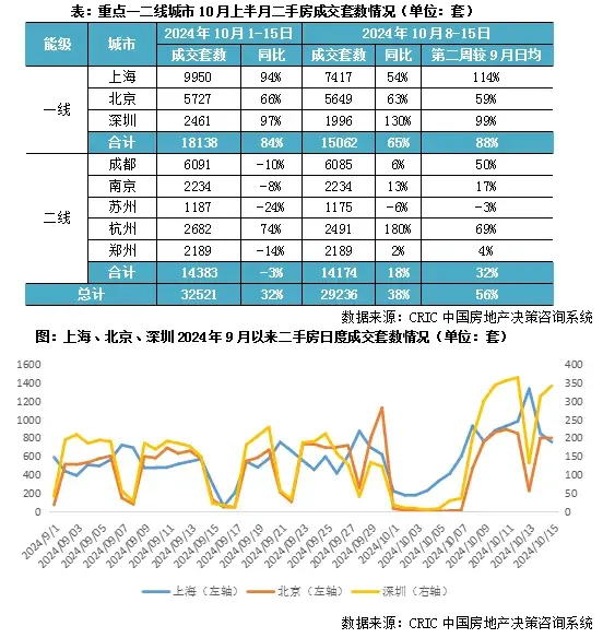 克而瑞數據顯示,10月1日-15日,北上廣深新房成交面積同比增11%,全面取消限購的廣州反彈最兇猛,日均成交漲3倍。二手房比新房的反響更熱烈,10月前半個月,上海和深圳的成交量幾乎翻倍,北京也怒漲66%。