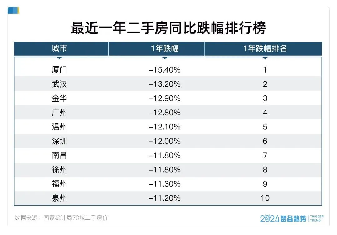 而最近一年裏,無一倖免。房價最高的幾個城市,跌幅已經超過了許多三四線城市。