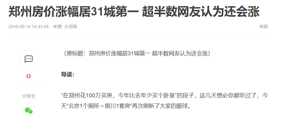 房價也跟着水漲船高。2016年8月,鄭州房價漲幅全國第一。腳踢北京上海,腳踩廣州深圳,風光無限好。
