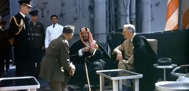 1945年2月14日,沙特國王伊本∙沙特與美國總統羅斯福,在昆西號巡洋艦上會面,雙方達成了一系列對國際政治影響深遠的協議。