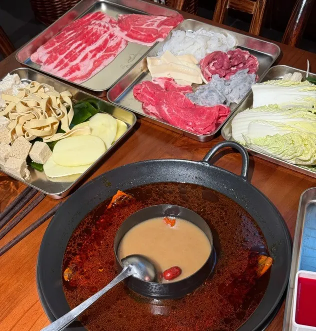 如果按照美團上138的套餐看,含鍋底一個、毛肚1斤、此外如油黃雞、蛋餃、土豆、冬瓜、金針菇之類,看起來很多,但顧客在套餐下評論最多的是,“套餐不夠吃,又加了點菜”。
