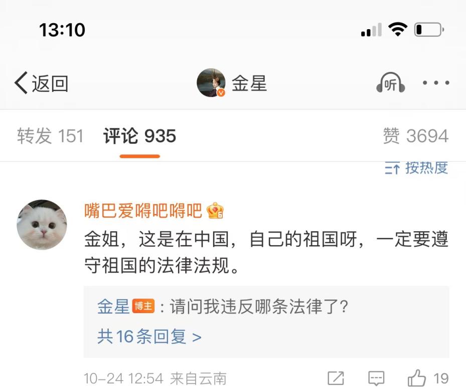 所以,我們是不是也可以留給金星老師一個問題,作為公眾人物,特別是粉絲基數巨大,影響力顯然具有一定規模的標誌,利用自己的影響力,雖出於維護自己利益和自由的初衷,但後續輿論形成對更多人個人信息的泄露,個人權利的侵犯。這樣的做法,是否適當,是不是在追尋自己的自由的同時,圈到了社會層面的“公共綠地”,甚至踩到了某個個體的安全和自由上呢?