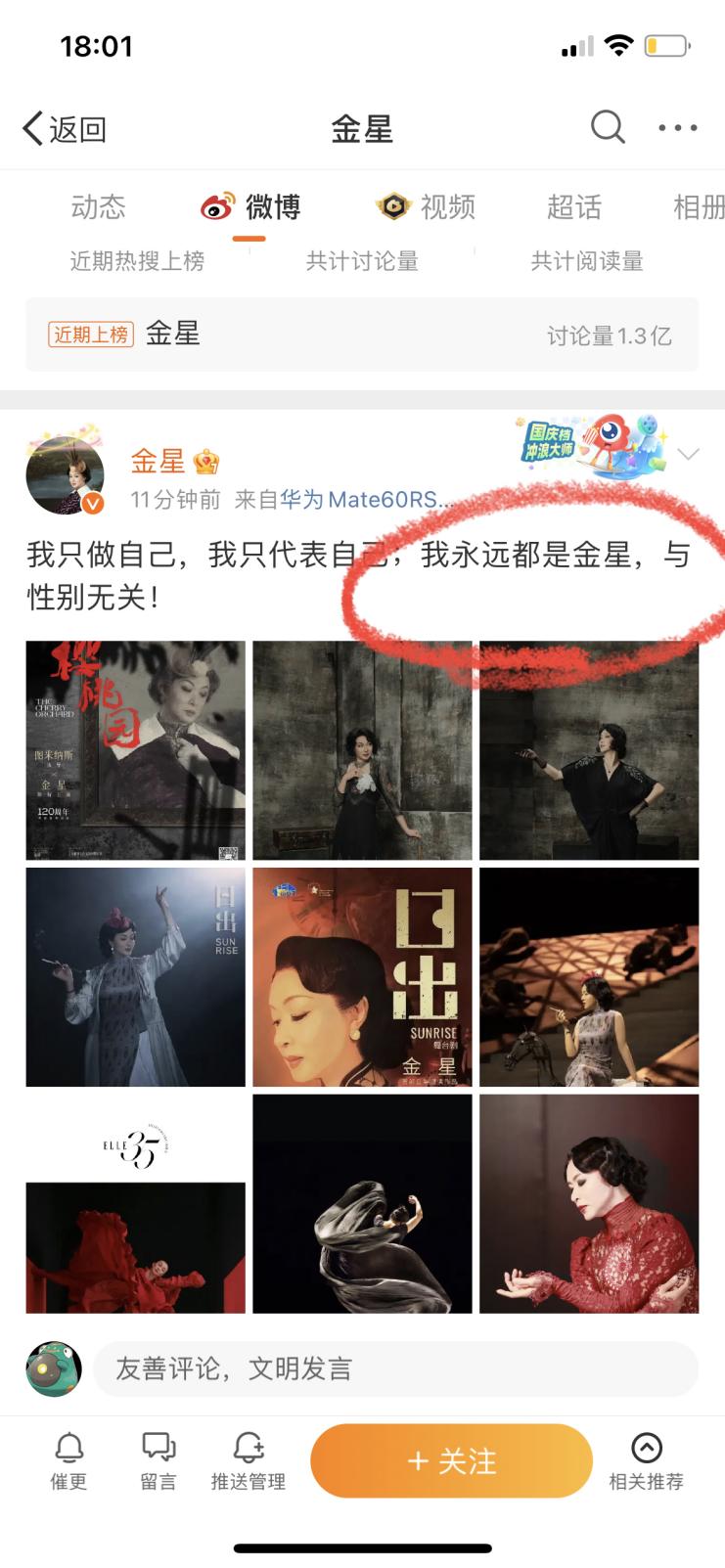 由此,金星在23日晚刪除了掛人以及辯解相關事件的微博。改為發佈一篇自我宣示的微博。