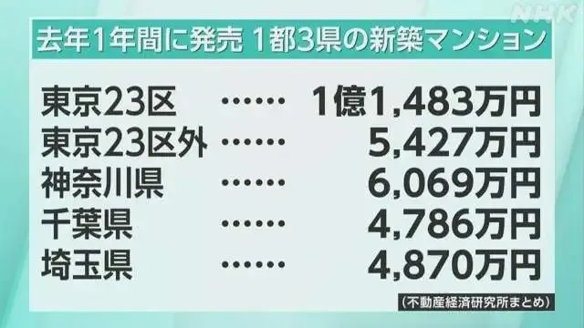 但目前,東京都內新建公寓的價格持續飆升,據報道,2023年東京23區新建公寓的平均售價超過了1億日元。