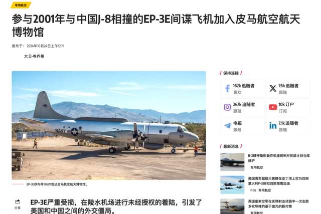 時隔23年,中美南海撞機事件EP-3E型偵察機將展出,什麼意思?_風聞
