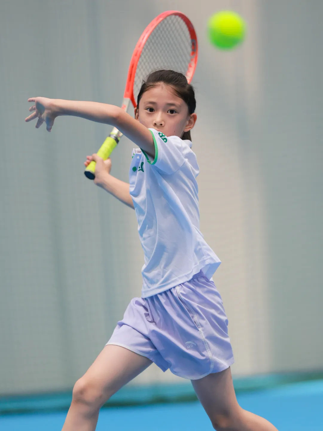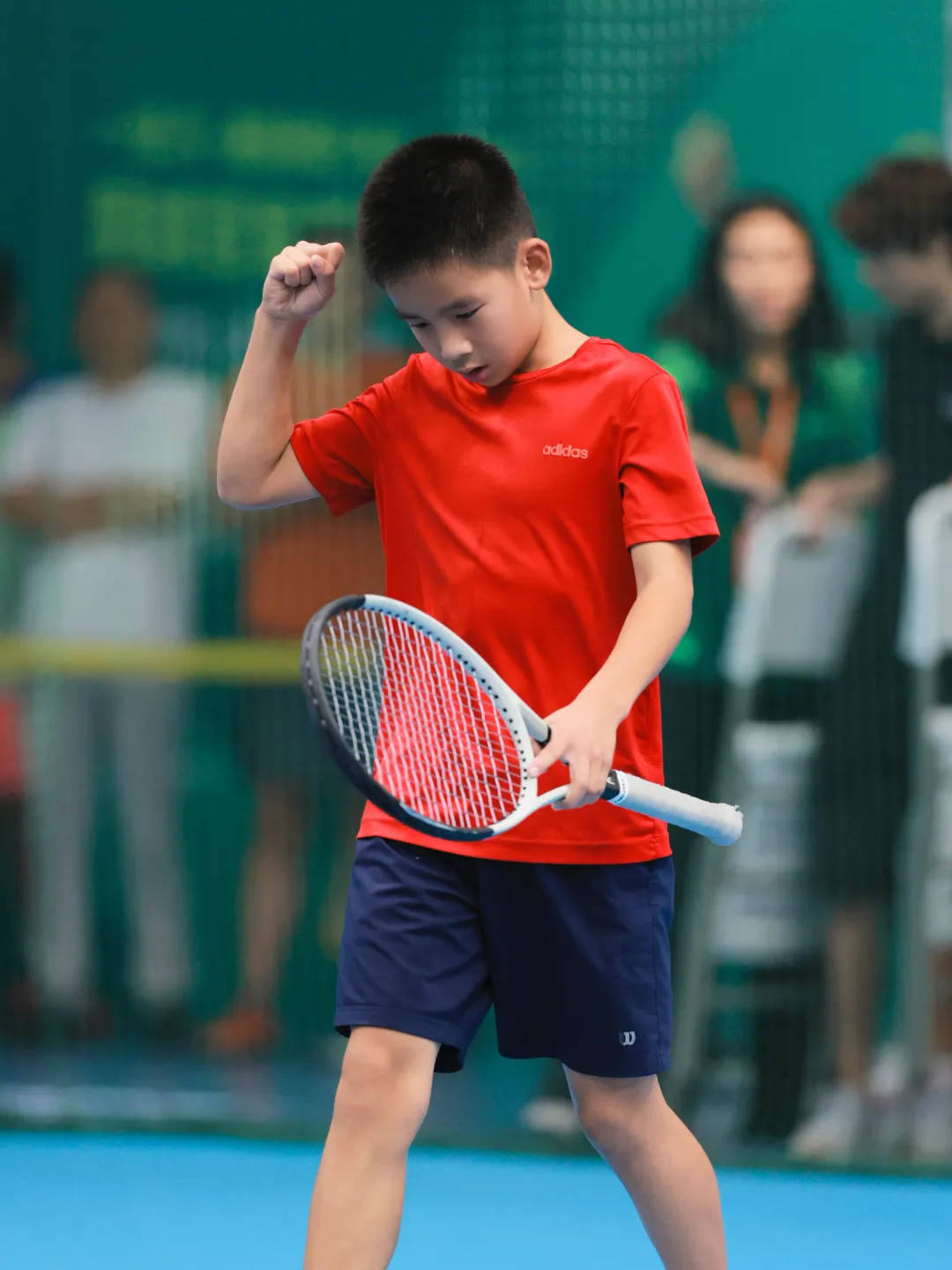 他們小小的年紀有着大大的能量,雖然年紀不大,但球齡更長。在比賽前會三三兩兩在簽到台前嬉笑合影,比賽時又會瞬間收起孩子氣,拿出一百二十分的認真對待賽場。揮拍間無所畏懼,也有不服輸的脾氣,丟掉一分之後會懊惱,贏下一場比賽也會開開心心地跳得很高。