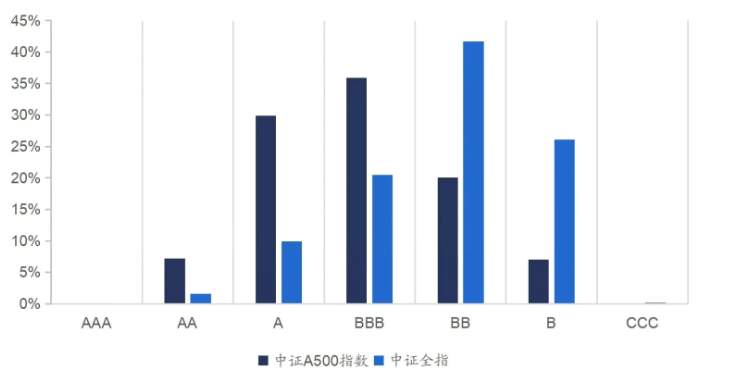圖4:中證A500指數與中證全指成分股ESG評分頻率分佈統計
