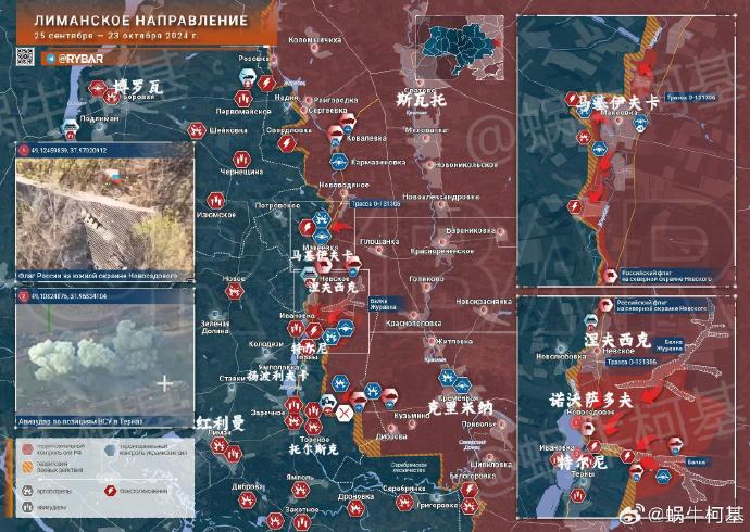 ❗️🇷🇺🇺🇦 截至 2024 年 10 月 24 日 18 點紅利曼地區情況,俄軍解放了諾沃薩多夫