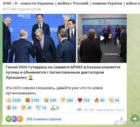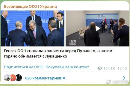 烏克蘭自媒體憤怒了:“聯合國秘書長居然向普京鞠躬,這個聯合國徹底崩潰了,讓我們組織一些新的東西吧”