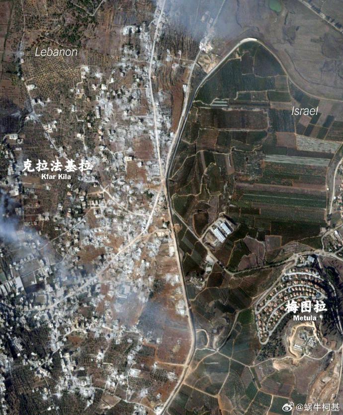 以色列國防軍吸取加沙經驗,目前的推進就是走到哪裏拆遷到哪裏,圖為邊境兩邊克拉法基拉和梅圖拉的對比