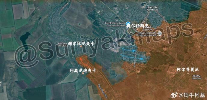 suriyak更新10.24捷爾任斯克局勢,這個更新應該是烏蘇這兩天最開心的一回,雞凍得連邊界都畫歪了俄軍在謝爾比尼夫卡取得新進展,慢慢逼近村中心。
