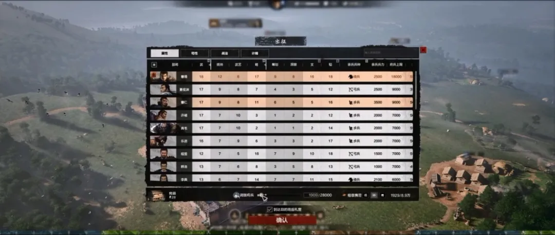 而從短暫顯示的出兵編隊界面來看,本作也包含內政和外交系統。武將的數值並沒有採用如《三國志》那樣的100分滿分系統,而是自創了一個“文韜武略”四維屬性。比如曹操的四維是:武18,略17,文16,韜18。其中每一維數值是由更細節數值相加而來。如武18是由統帥12+武藝6組成的。目測這個數值體系除了影響帶兵與內政,還大概率與學習各種技能特性有關係。