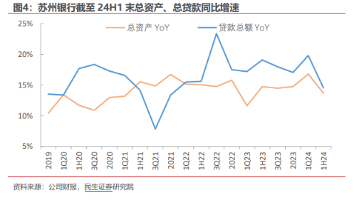 蘇州銀行的歸母淨利潤連續三年保持兩位數增速。2024上半年實現營業收入63.9億元,同比增速1.88%;實現歸母淨利潤29.5億元,增幅12.1%。