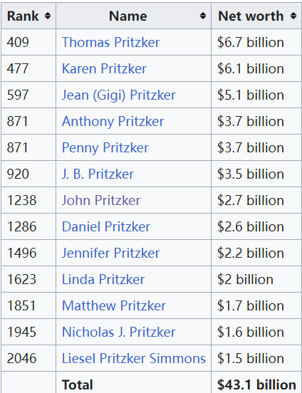 1953年生人,億萬富翁、投資人、慈善家。John Pritzker是美國最富裕之一的家族——Pritzker的家族成員。Pritzker家族即全球最大之一的凱悦酒店集團(Hyatt)創立者,John 也從中繼承了鉅額財產。