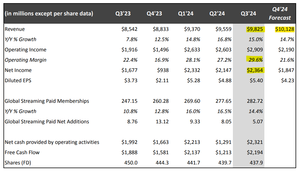 當地時間10月17日,Netflix 發佈了2024年度Q3財報:
