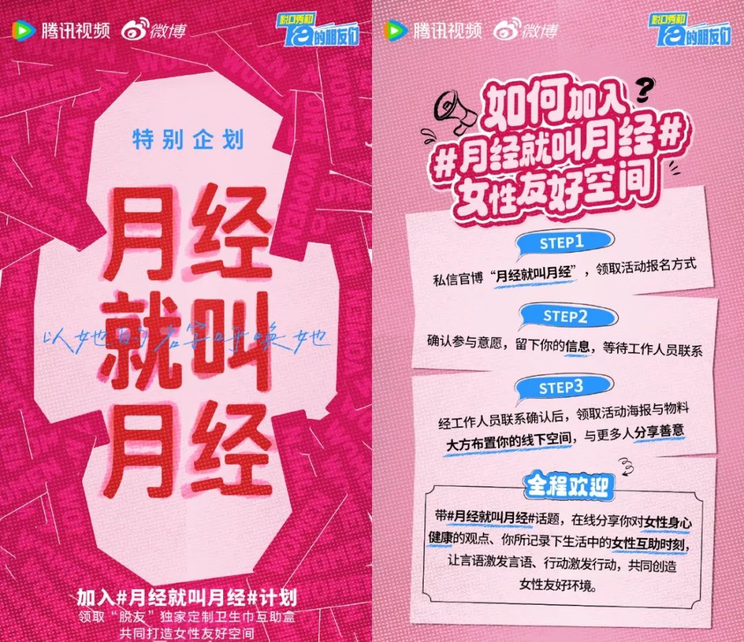隨後,節目組順勢推出了“月經就叫月經”的特別企劃,推動社會拋開月經羞恥,也無疑給這屆《脱友》增添了不少社會深意。